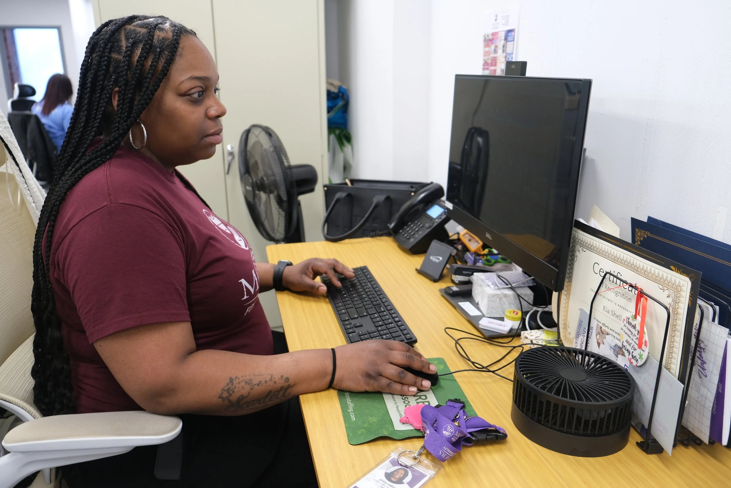 Today she holds the position of senior family advocate. Handling a case load of about 40 clients a week, Shell is often the first point of contact with grieving families in need of food and housing.